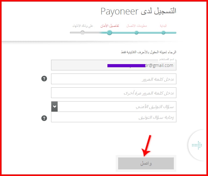 ثم تقوم بإضافة كلمة المرور و سؤال الأمان كما توضح الصورة