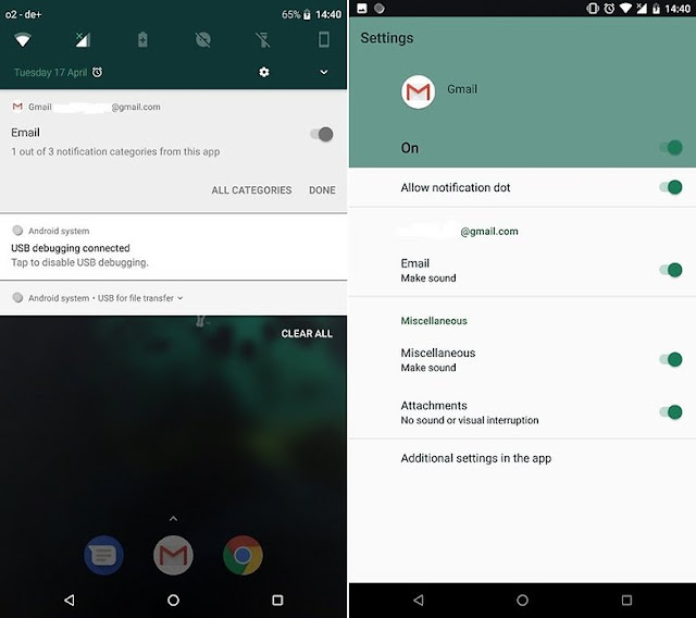 قد يعرف العديد منكم أنه إذا قمت بتمرير رسالة إلاشعارات إلى جانب ، فسوف تختفي. ومع ذلك ، يمكنك القيام بأشياء أخرى إذا قمت بإمساك إصبعك واختر أحد الأزرار التي تظهر على اليمين. يمكن القيام بذلك في كل من شاشة القفل وشريط الاشعارات سترى خيار "جميع الفئات" ، والذي سيوجهك إلى إعدادات الإشعارات للتطبيق المعني.