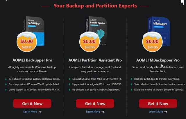 - البرامج المعروضة هي كالتالي:برنامج إدارة الأقسام Partition Assistant Pro وبرامج النسخ الاحتياطي Backupper Pro و MBackupper Pro