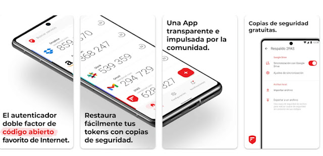 - 2FA Authenticator (2FAS)تعد هذه إحدى أدوات المصادقة المكونة من خطوتين الأكثر شيوعًا والتي يمكن أن نجدها على الويب. إنه تطبيق مفتوح المصدر، وقد ملأه مجتمع المطورين بعدد كبير من الخيارات التي يمكن أن تكون مثيرة للاهتمام للغاية. بالإضافة إلى إضافة التحقق بخطوتين إلى حساباتنا، على سبيل المثال، فإنه يسمح لنا أيضًا بإنشاء نسخ احتياطية لكل ما نحتاج إليه. ويمكنك أيضًا إضافة فتح القفل البيومتري، وهو أمر مناسب بشكل خاص.