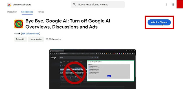 - قم بتثبيت الملحقات للتخلص من الذكاء الاصطناعيهناك العديد من ملحقات كروم التي تعمل تمامًا كطريقة لإخفاء النتائج التي تم إنشاؤها بواسطة الذكاء الاصطناعي من غوغل ، وبهذه الطريقة لن تضطر أبدًا إلى رؤيتها. يُطلق على الإضافين اللتين اخترناهما لكم هذه المرة اسم Bye، Bye Google AI وHide Google AI Overview. لتثبيت هذه الملحقات، كل ما عليك فعله هو اتباع الخطوات التالية: